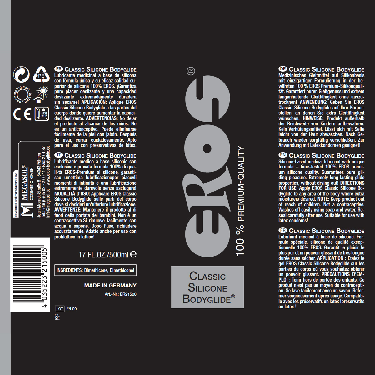Kent u Classic Silicone Bodyglide van EROS al? Zijn unieke formule garandeert puur glijgenot en extreem lang aanhoudend glijvermogen bij de intieme omgang zonder uitdrogen! Met de beproefde formule voor 100% siliconenkwaliteit zorgt EROS voor opwindende erotische momenten. Misschien heeft u al ervaring opgedaan met het retroproduct Bodyglide Superconcentrated Lubricant van EROS? Dan is dit product precies wat u zoekt! Deze unieke Classic Silicone Bodyglide zorgt voor meer soepelheid, wordt zeer goed verdragen en laat een aangenaam en zijdezacht huidgevoel achter. Dat staat garant voor nog meer erotisch plezier met een product van topkwaliteit!
