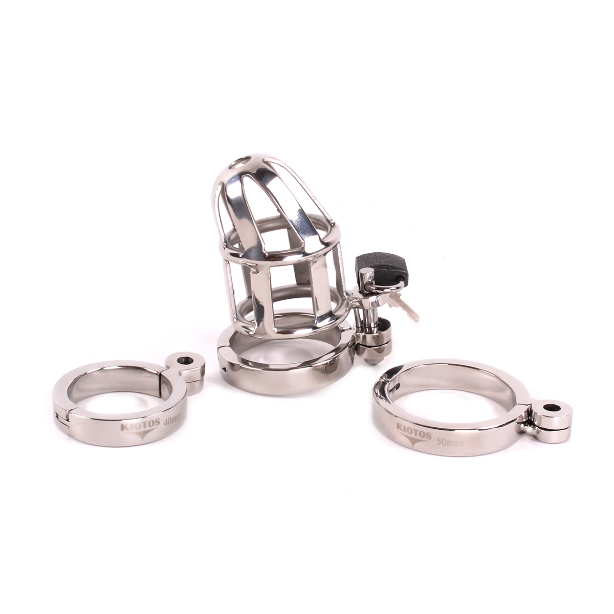 Bij deze kuisheidskooi worden drie stalen ringen meegeleverd: 4 cm, 4.5 cm en 5 cm.