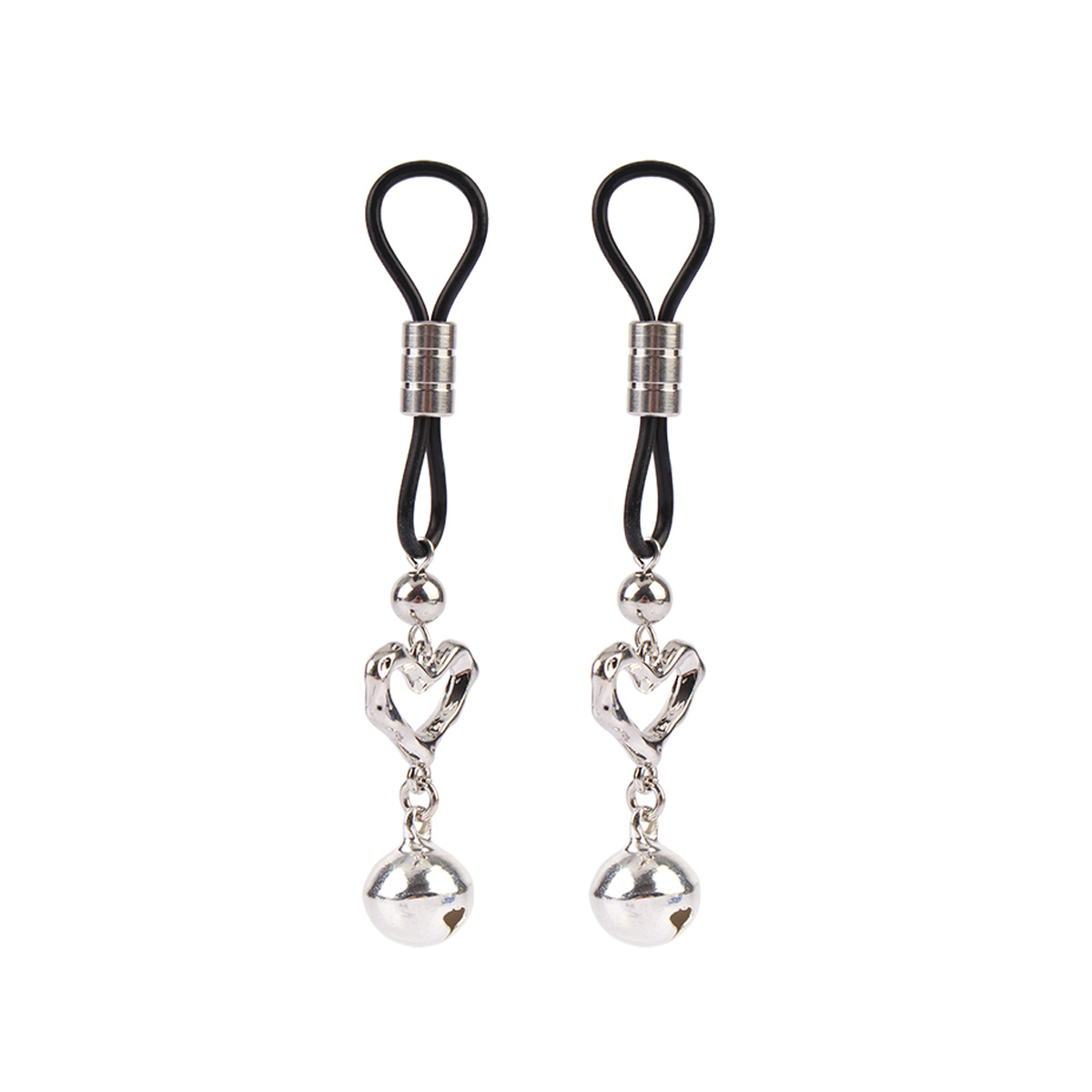 Deze tepelklemmen zijn gemaakt van hoogwaardige materialen en zijn duurzaam, comfortabel en gebruiksvriendelijk. Plaats de klemmen eenvoudig op uw tepels en pas de spanning naar wens aan. De siliconen banden zorgen voor een veilige en comfortabele grip, terwijl de decoratieve zinken hartjes met belletjes een speels tintje aan je spel geven.
