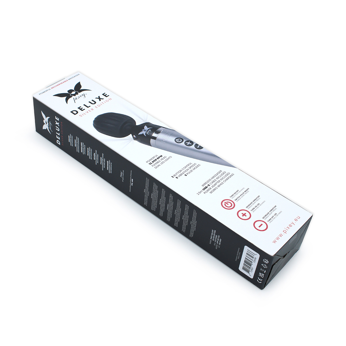 Ontdek de Pixey Deluxe Silver Edition, s werelds krachtigste oplaadbare wand. Perfect voor lichaamsmassages en intieme momenten. Met zijn innovatieve vibratiemotor biedt deze elegante wand een ongeëvenaarde beleving van genot en ontspanning. Een must-have voor elke nachtkastje.